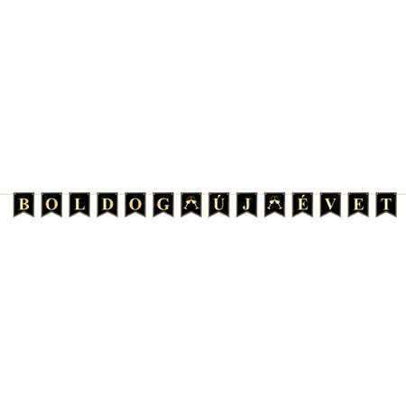. Felirat, 200 cm, "Boldog Új Évet", fekete-arany