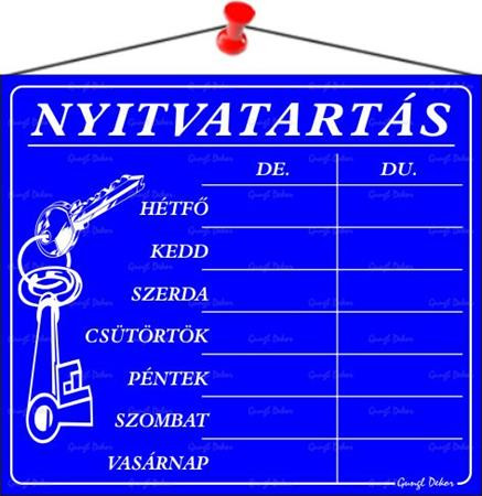 . Információs tábla, 20x17,5 cm, "Nyitvatartás", kék