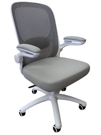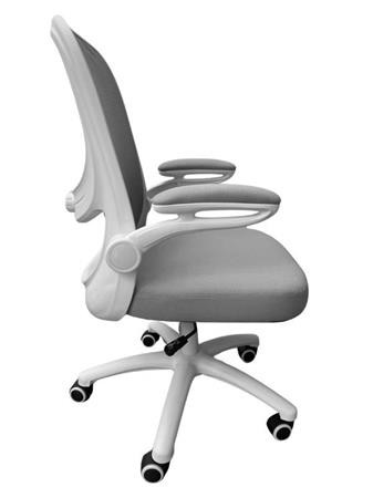 . Irodai forgószék, szürke hálós háttámla, szövet ülőlap, fehér műanyag váz és lábkereszt,"Kea"