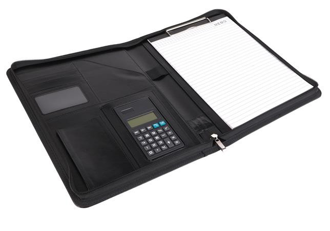 . Konferencia mappa, A4, műbőr, számológéppel, fekete
