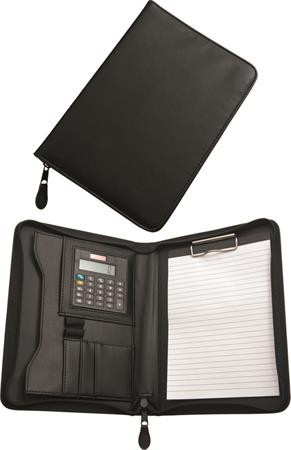 . Konferencia mappa, A5, műbőr, számológéppel, leszorítóval, fekete