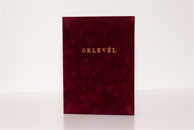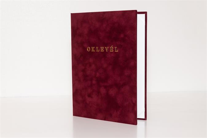 . Oklevéltartó, A4, exkluzív, plüss, aranyozva, bordó