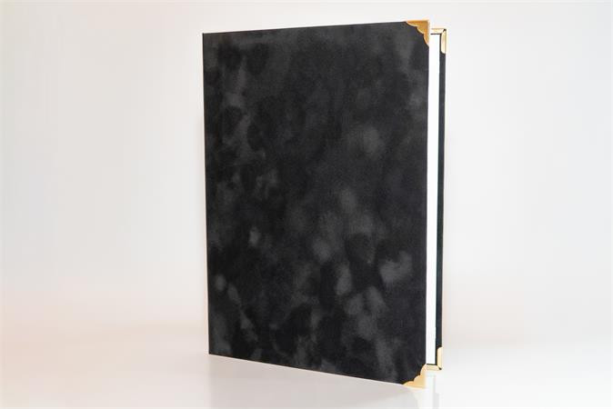 . Oklevéltartó, A4, exkluzív, plüss, 4 fém sarokkal, fekete