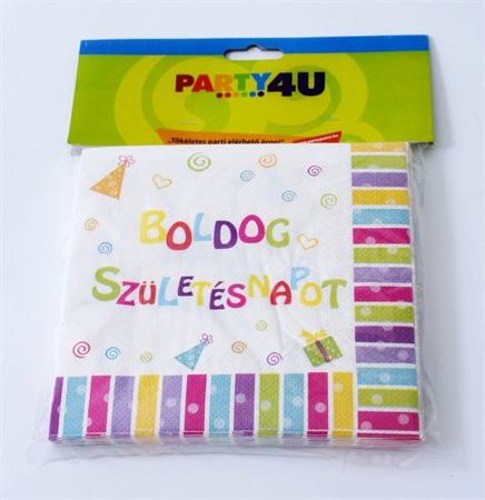 . Szalvéta, 33x33 cm, "Boldog születésnapot"