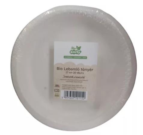 . Tányér, PLA, lebomló, 17 cm, 50 db, "Party"