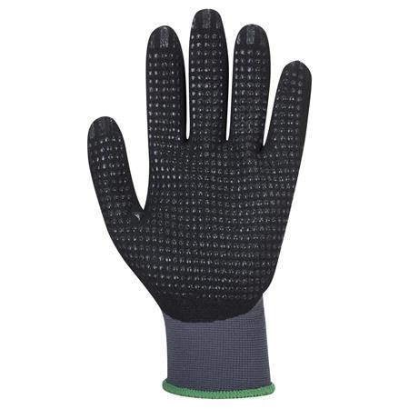 . Védőkesztyű, nylon, nitrilhab, L méret "DermiFlex Ultra Plus", szürke-fekete