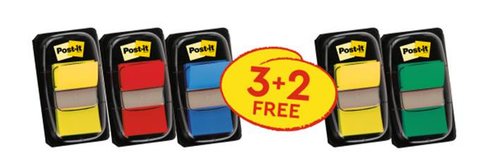 3M POSTIT Jelölőcímke, műanyag, 3+2x50 lap, 25x43 mm, 3M POSTIT, vegyes