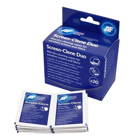 AF Tisztítókendő, képernyőhöz, 20 db nedves-száraz kendőpár, AF "Screen-Clene Duo"