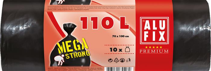 ALUFIX Szemeteszsák, mega erős, 110 l, 10 db, 70x110 cm, 80 µ, ALUFIX, fekete