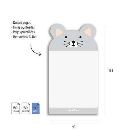 APLI Egérkés öntapadó jegyzettömb, 90×165 mm, 60 lap, APLI Back2Fun, szürke