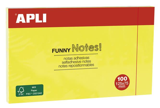 APLI Öntapadó jegyzettömb, 125x75 mm, 100 lap, APLI "Funny", sárga