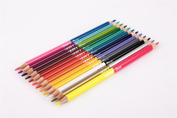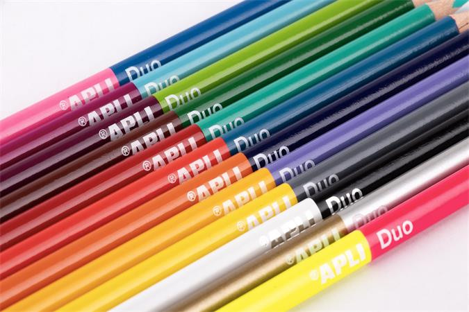 APLI Színes ceruza készlet, kétvégű, háromszögletű, APLI "Duo", 24 különböző szín