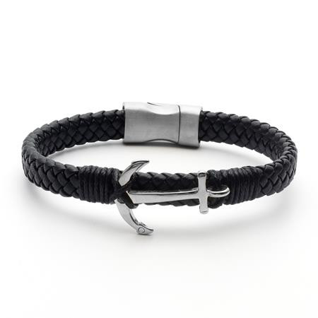 ART CRYSTELLA Karkötő, fekete fonott bőr, mágneszárral, ezüst színű horgonnyal, 22,5cm, ART CRYSTELLA®