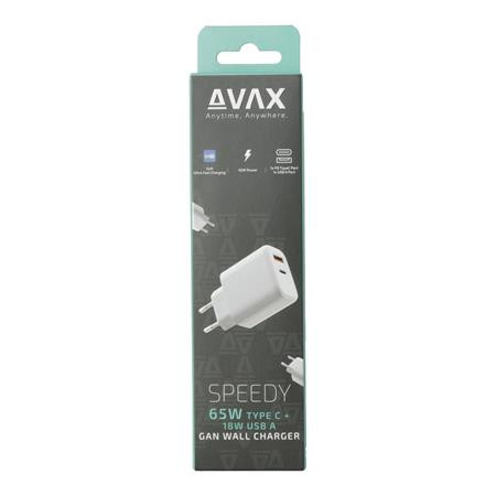 AVAX Hálózati töltő, GaN, USB-A + USB-C, AVAX "CH360 Speedy", fehér