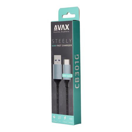 AVAX Töltőkábel, USB-A - USB-C, 1,5 m, AVAX "CB301G", acélszürke