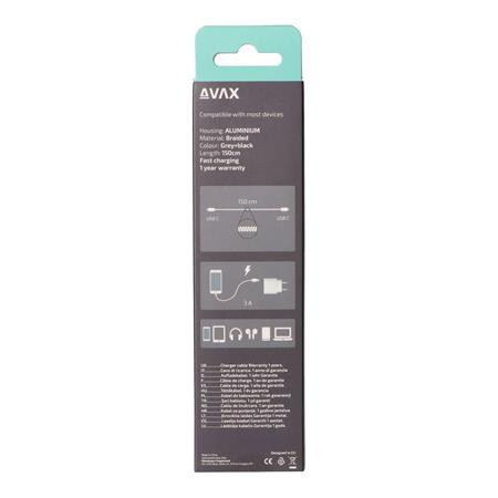 AVAX Töltőkábel, USB-C - USB-C, 60W, 1,5 m, AVAX "CB302G", acélszürke