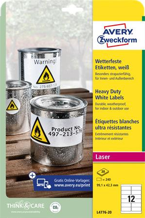 AVERY ZWECKFORM Etikett, 99,1x42,3 mm, poliészter, időjárásálló, AVERY ZWECKFORM, fehér, 240 etikett/csomag