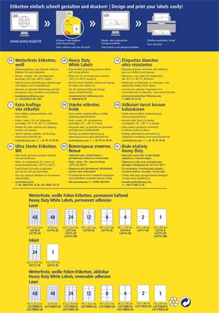 Garancia 0Gyártó AVERY ZWECKFORMVTSZ 39199080Cikkszám cor_AYL477620Tömeg 343 g/csom