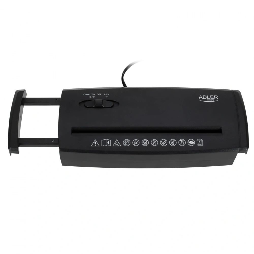 - Az Adler AD 1040 egy kompakt, otthoni vagy kis irodai használatra tervezett iratmegsemmisítő, amely akár 5 darab 80 g/m²-es A4-es lapot képes egyszerre 6,8 mm széles csíkokra vágni, megfelelve a P-1 biztonsági szintnek.