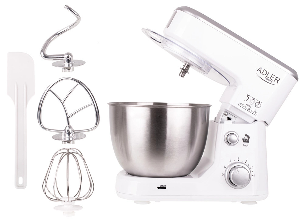 Keverje össze, verje fel habverővel vagy gyúrja össze könnyedén fröccsenés nélkül ételei hozzávalóit az Adler konyhai robotgépével. 6 sebesség közül választhat, így sok étel elkészítésénél hasznára lehet. A 4,0 literes edénykapacitás elegendő a főzéshez nagy családok vagy akár partik számára. Az készülék fröccsenésgátló fedéllel van felszerelve melyen található egy kis ablak, amin keresztül az összetevőket keverés közben is hozzá tudja adni. Kényelmes használat, könnyű tisztítás.
