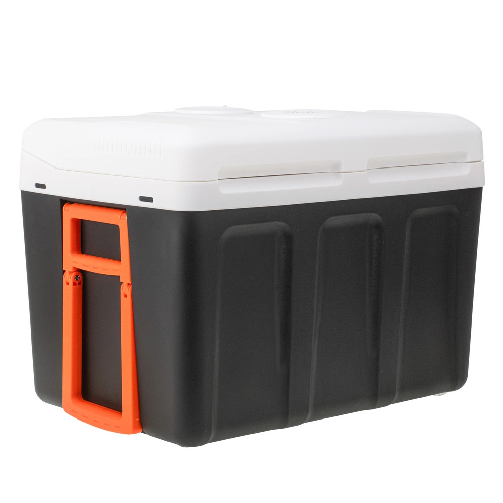 Utazók számára készült, akik kempingezés közben is szeretnek hűsítő italokat inni. A hordozható autós hűtőszekrény 40 literes. Praktikus zárakkal záródik a fedél biztonságos rögzítéséhez. A ház speciális hőszigetelésének köszönhetően állandó hőmérsékletet biztosít. Ergonomikus, összecsukható fogantyú található benne, amely elrejthető a termozsák fedelében. Zárva az autós hűtő-melegítő egy praktikus fehér tokká alakul, amely jól néz ki és kényelmesen szállítható.