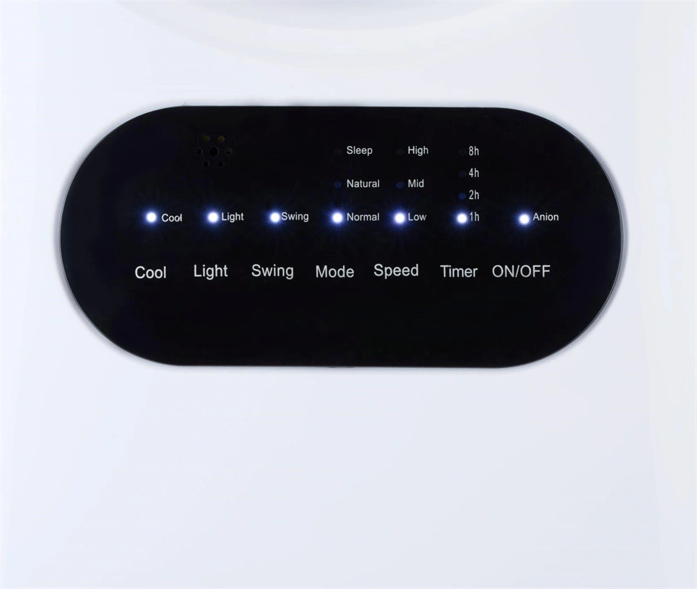 - Hűtés, párásítás és levegőtisztítás: A víztartály és a mellékelt jégakku segítségével intenzívebb hűtőhatás érhető el