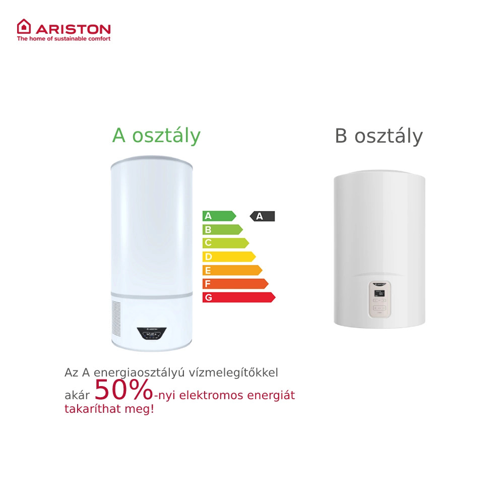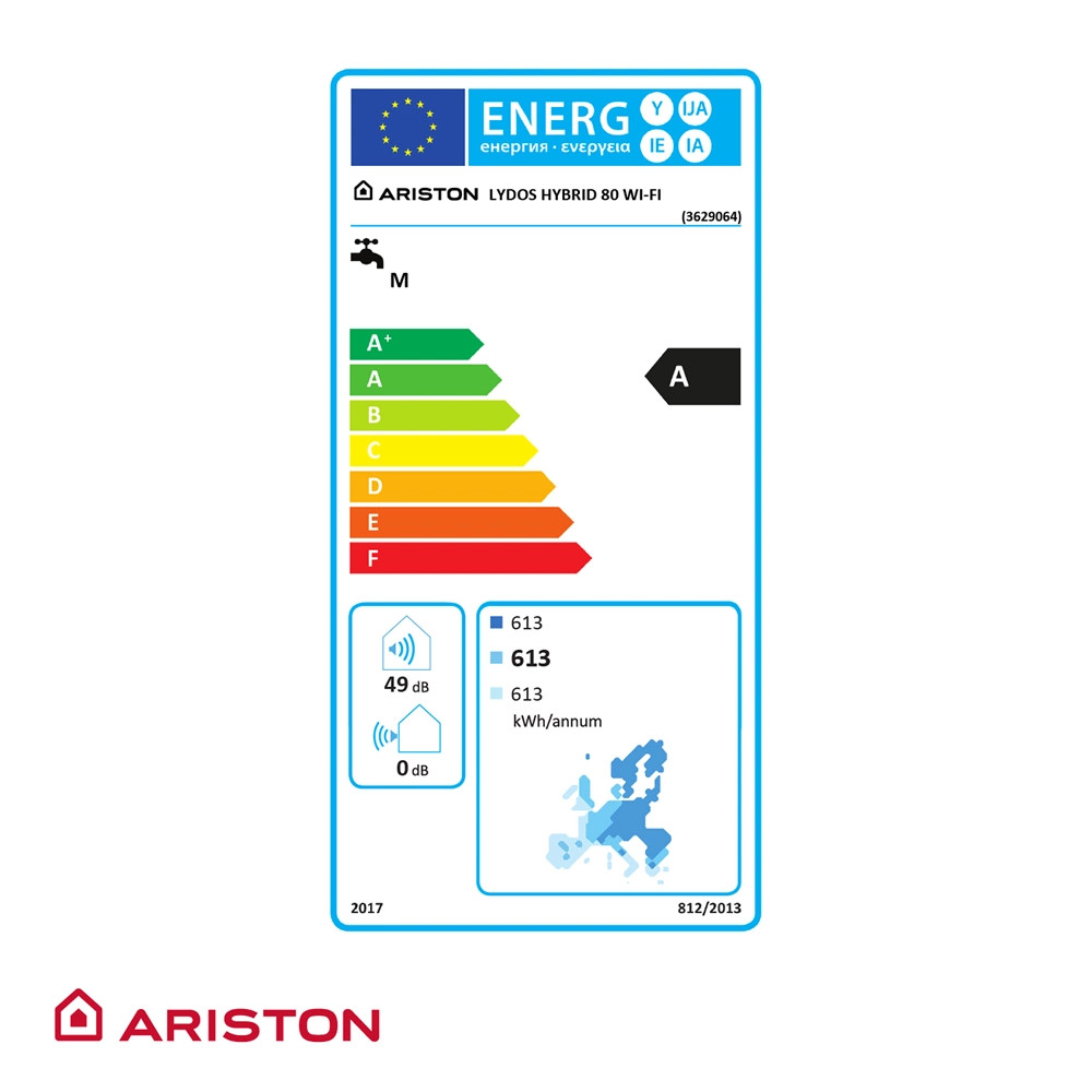 Az ARISTON LYDOS HYBRID WIFI 80 elektromos bojler új és exkluzív Hybrid Intelligence technológiája hatékonyan hangolja össze az elektromos és a megújuló (hőszivattyús) energiát a felhasználó szokásainak figyelembe vételével, ami ezáltal 50%-kal nagyobb energiamegtakarítást tesz lehetővé, mint a legnagyobb hatásfokú, B osztályú elektromos vízmelegítők.
