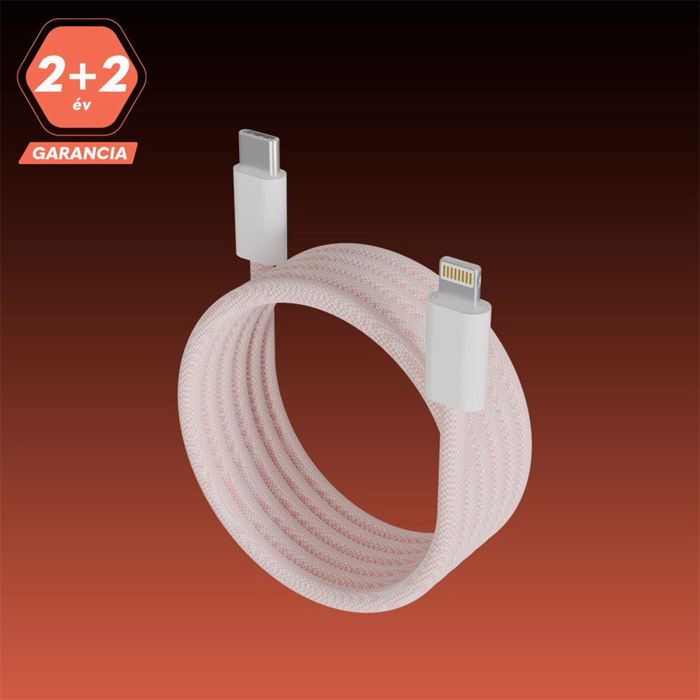 AVAX CB611P MAGNETY 27W USB-C - LIGHTNING mágneses gyorstöltő kábel, fonott 1m, rózsaszín