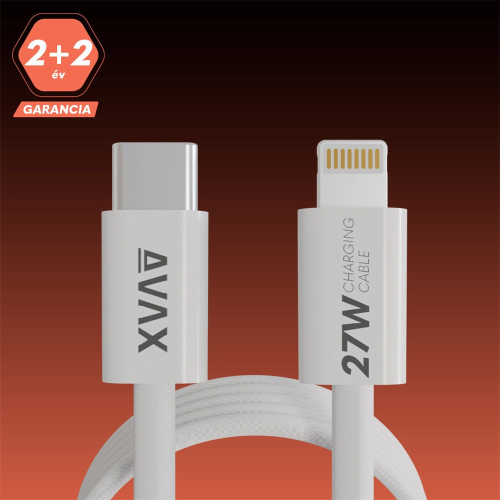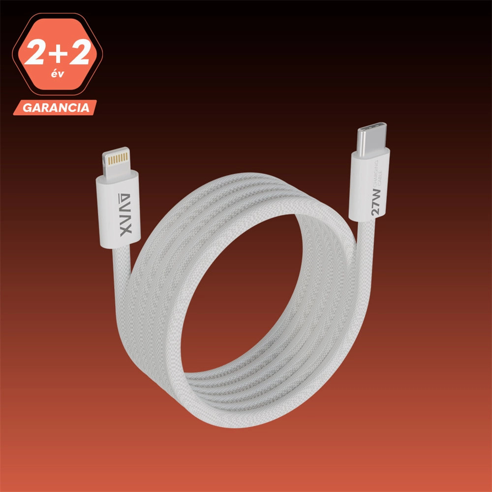 AVAX CB611W MAGNETY 27W USB-C - LIGHTNING mágneses gyorstöltő kábel, fonott 1m, fehér