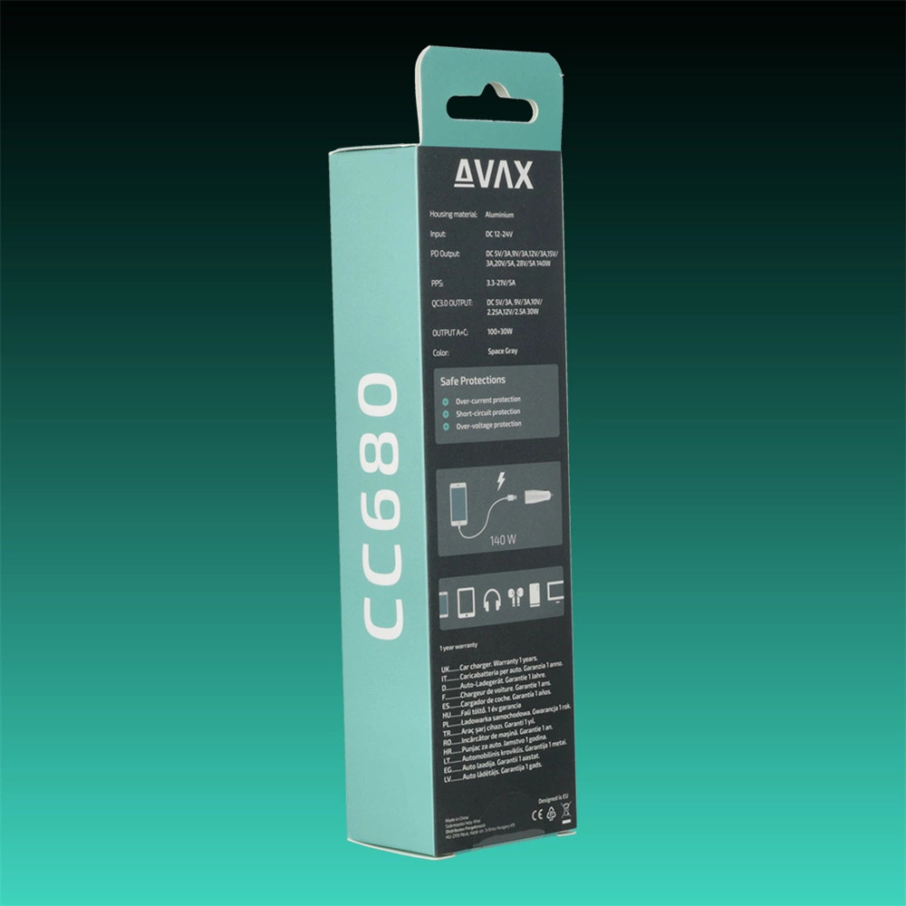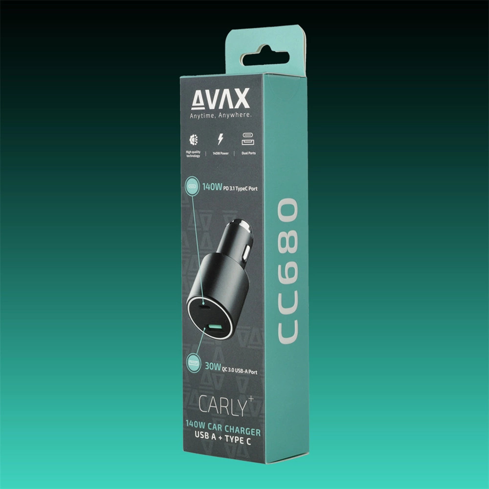 Avax CC680B AUTÓS TÖLTŐ 140W USB-C, USB-A