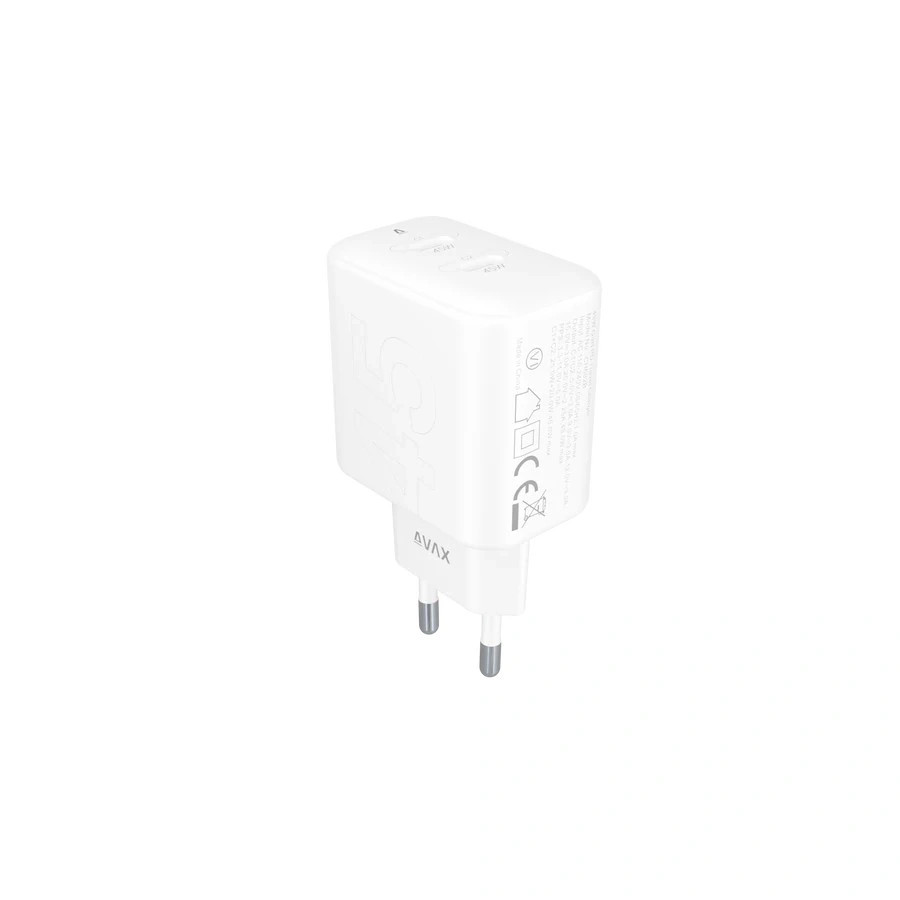 Az AVAX CH602 USB-C töltő adaptere két Power Delivery USB-C csatlakozóval rendelkezik, mindegyik port 45W teljesítményt nyújt. Ez a rendszer lehetővé teszi, hogy széles körű eszközöket tölts meg gyorsan és hatékonyan, miközben a kompakt méret a mobilitást is biztosítja. Együttes töltés esetén 25+20W töltést kapsz.