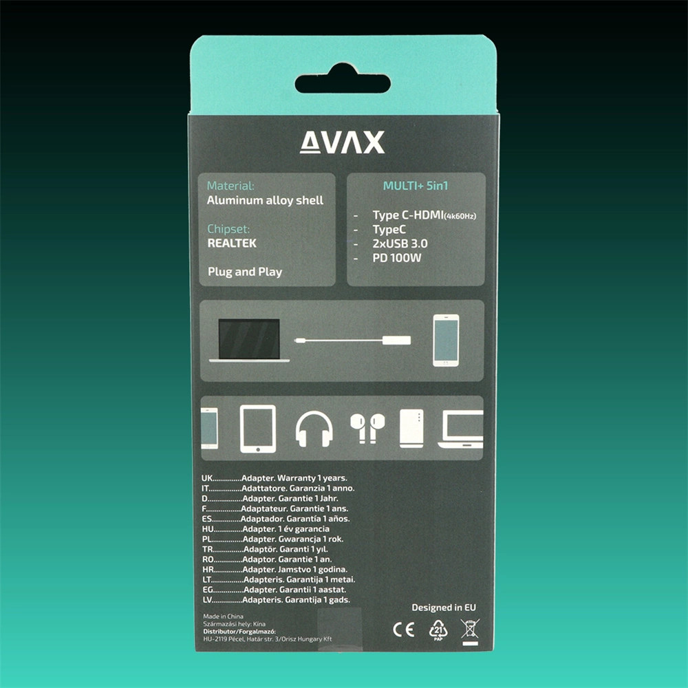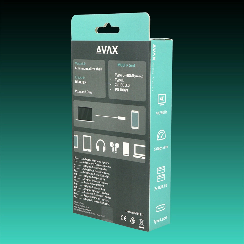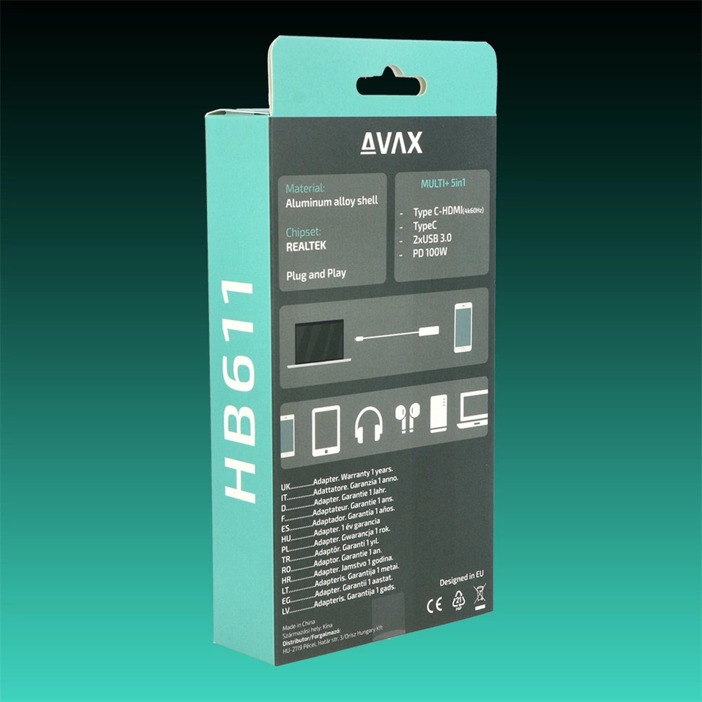 Az USB-C Hub egyszerűen csatlakoztatható a USB-C porttal rendelkező eszközéhez, és nincs szükség külön telepítésre vagy beállításokra. Azonnal működésbe léphet, és növelheti az eszközkapacitását.