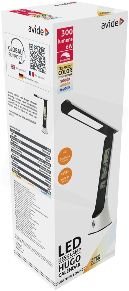 Avide ABLDLC-6W-WB-HG ASZTALI LÁMPA LED BŐRHATÁSÚ FEHÉR-FEKETE 5W