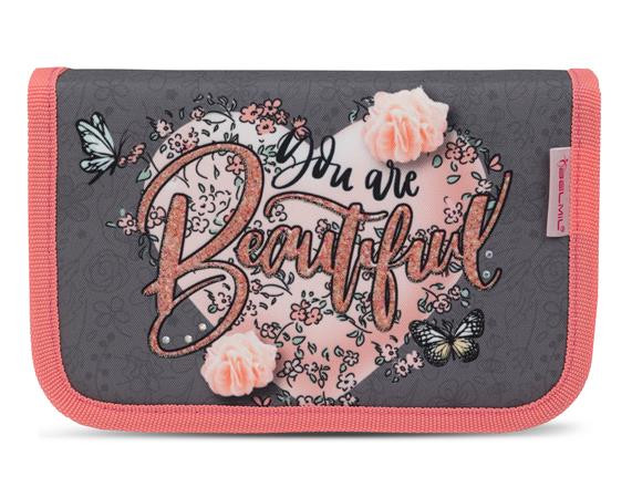 BELMIL Tolltartó, klapnis, cipzáras, BELMIL "Bloomy Blossom", szürke-rózsaszín, szív