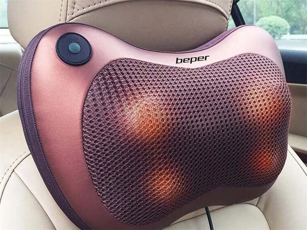 Ez a masszázspárna ideális a nyak és a hát masszírozására otthon vagy az autóban. Adapterrel felszerelt. 4 masszírozó motorja van, óramutató járásával megegyező és ellenkező irányban is forog (ki- és bekapcsoló gombjával állítható). Segíti a vérkeringést és lazítja az izmokat. Automatikusan kikapcsol 15 perc elteltével. Túlmelegedés elleni védelemmel ellátott.