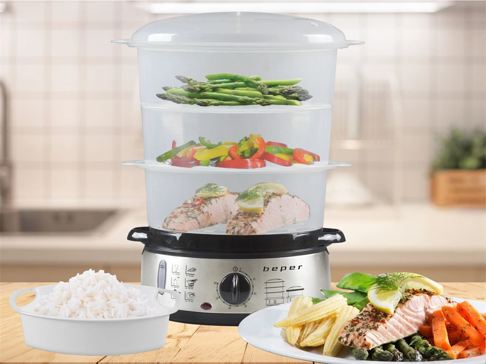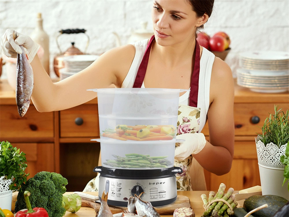 - Elektromos ételpároló rozsdamentes acél aljzattal és 3 BPA mentes műanyag átlátszó tárolóval, hogy ellenőrizni tudjuk a főzés folyamatát.