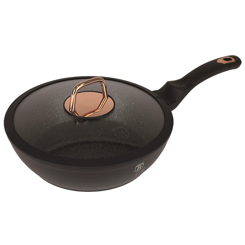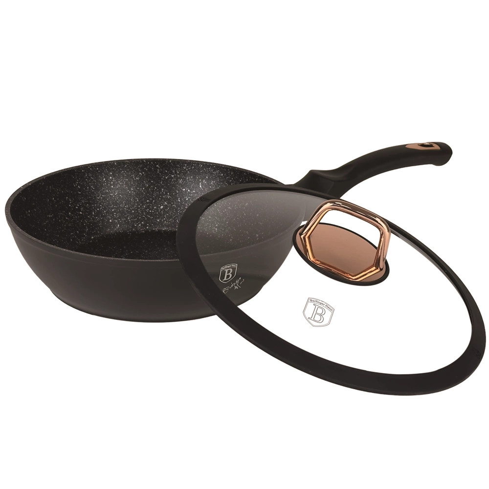 A serpenyő ergonomikus, puha tapintású fogantyúja a Berlinger Haus felhasználói kényelem iránti elkötelezettségének másik ismertetőjele. Szilárd fogást ígér, és hűvös marad, így magabiztosan forgathatod, keverheted és piríthatod.