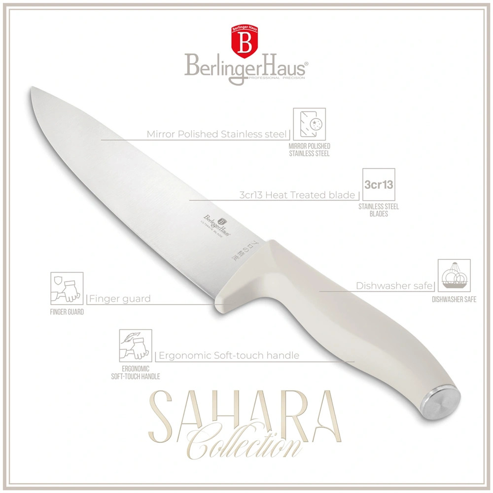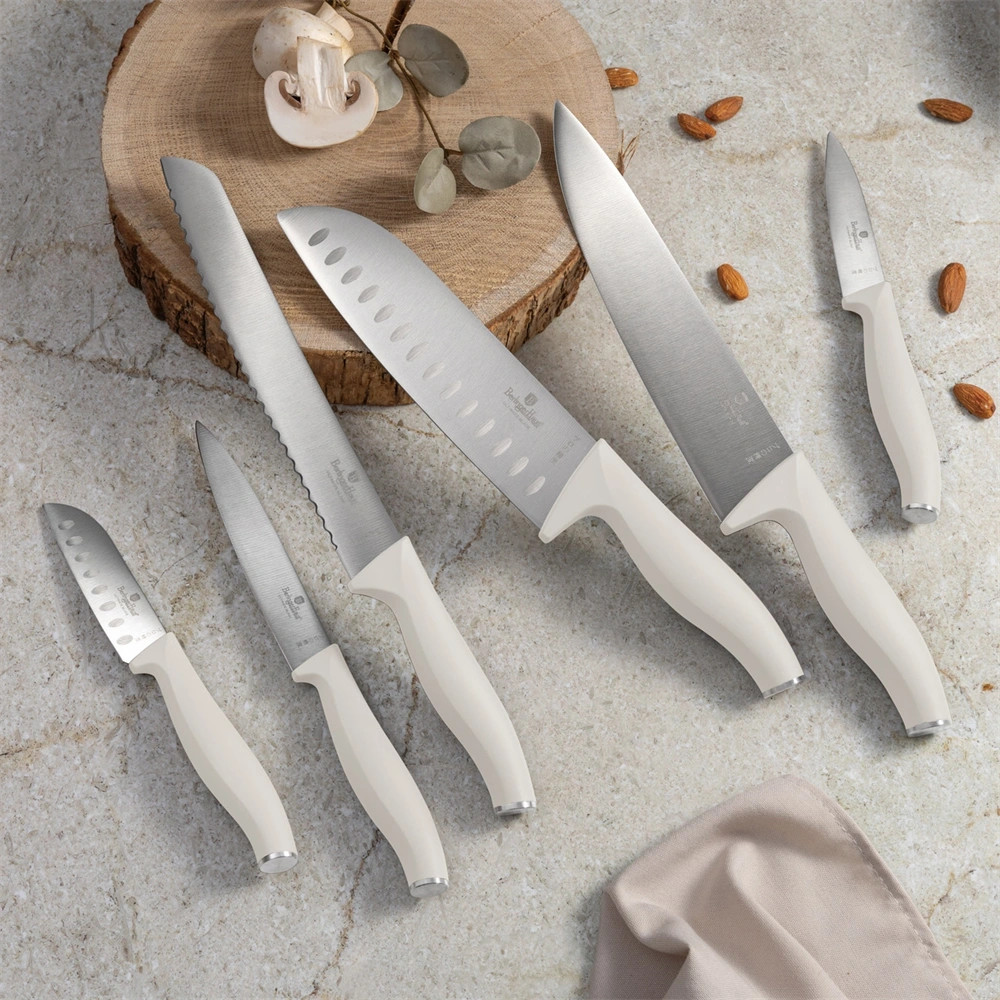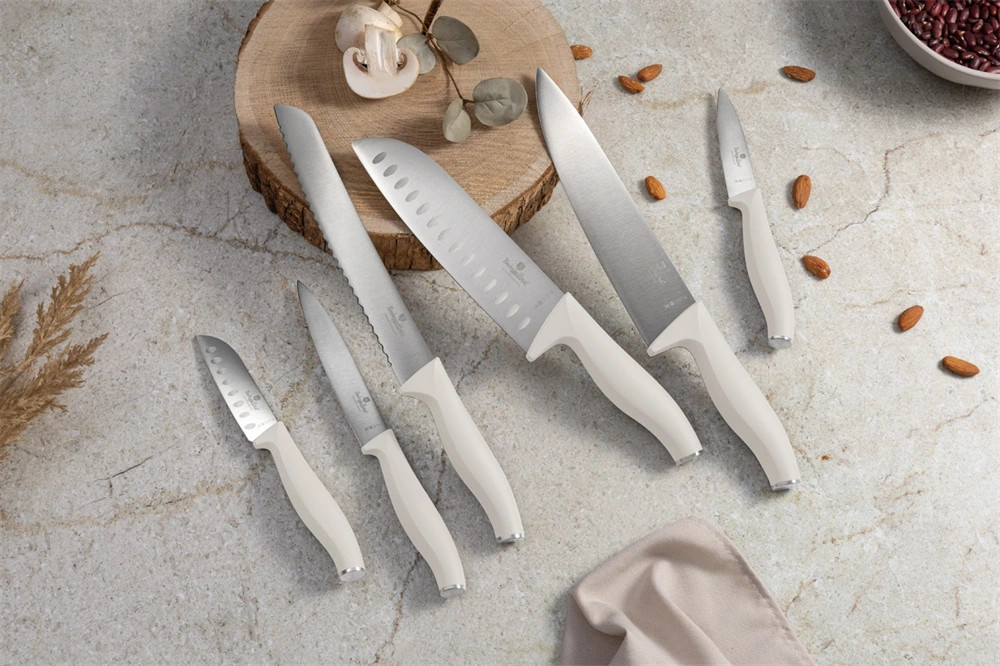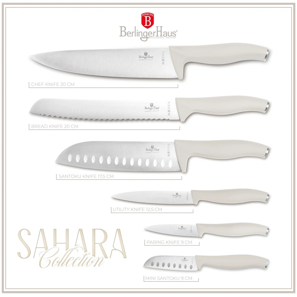 A 6 részes késkészlet a Sahara Collection része, amely a konyhai eszközök új szintjét képviseli. Ez a készlet nemcsak a funkcionalitásával, hanem a megjelenésével is lenyűgöz. A késeket nem kell elrejteni a fiókban, hiszen a matt krém színű, elegáns dizájnjuk bármely konyhapulton megállja a helyét.