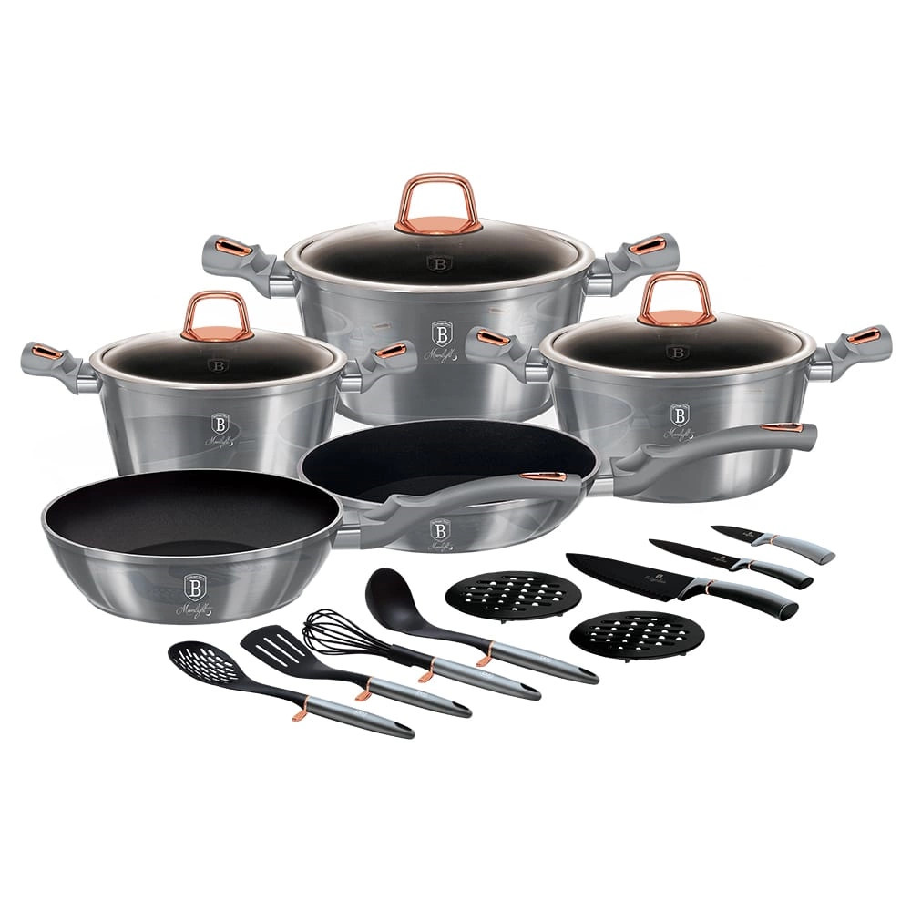 A BerlingerHaus serpenyői és edényei szinte kivétel nélkül kovácsolt alumíniumból készülnek, amely lehetővé teszi a magasfokú hővezetést. Emellett 3x tartós tapadásmentes titán bevonattal rendelkeznek, aminek köszönhetően az étel nem ragad és nem ég az edény aljára, így az ételek minimális zsiradék hozzáadásával is egyenletesen fognak átsülni és szaftosak maradnak.