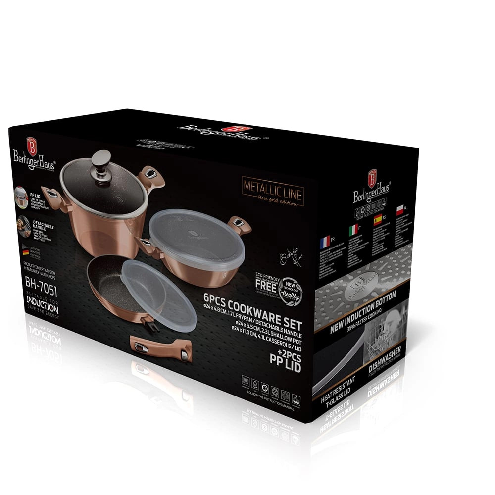 Berlinger Haus BH/7051 EDÉNYKÉSZLET 6 RÉSZES, LEVEHETŐ NYÉLLEL
