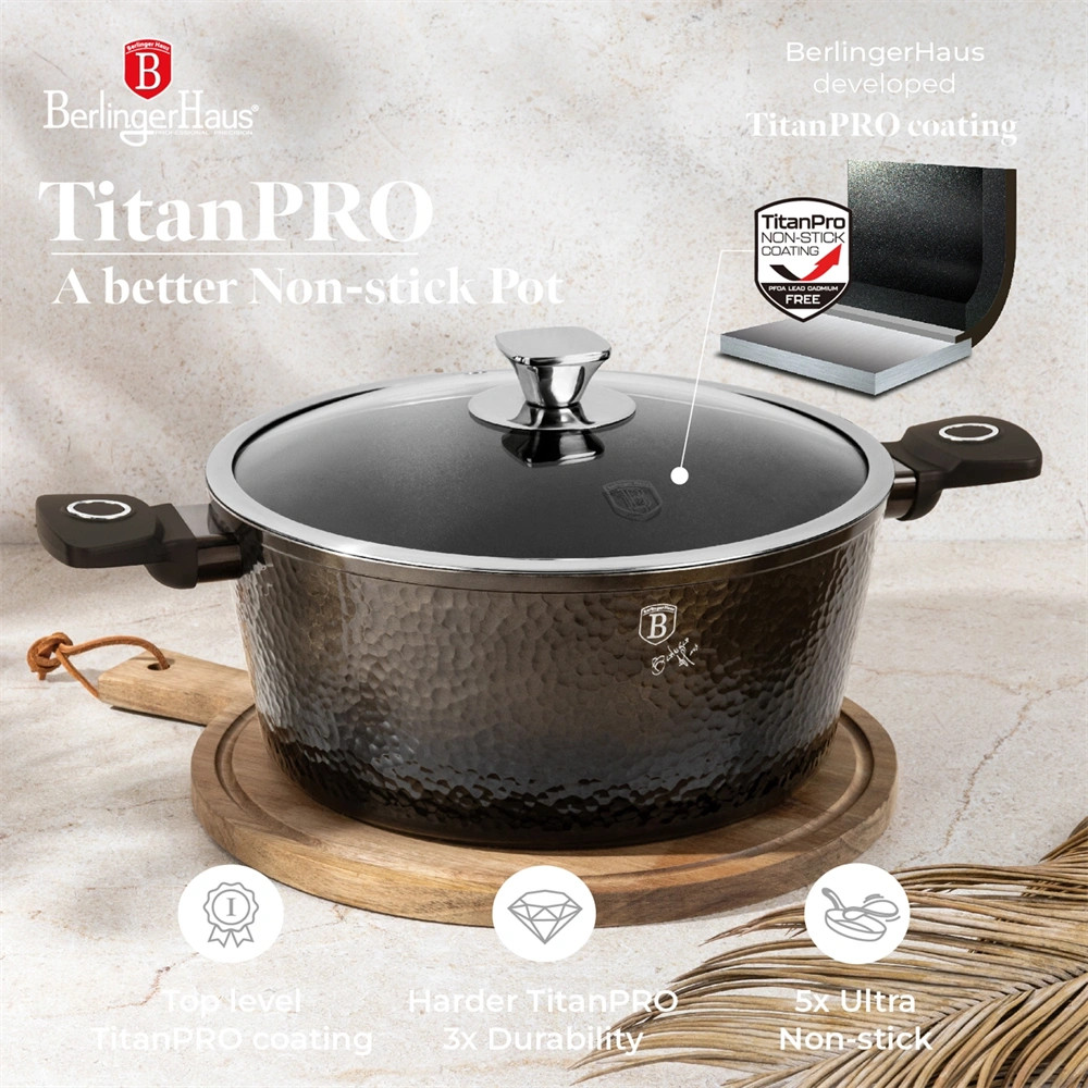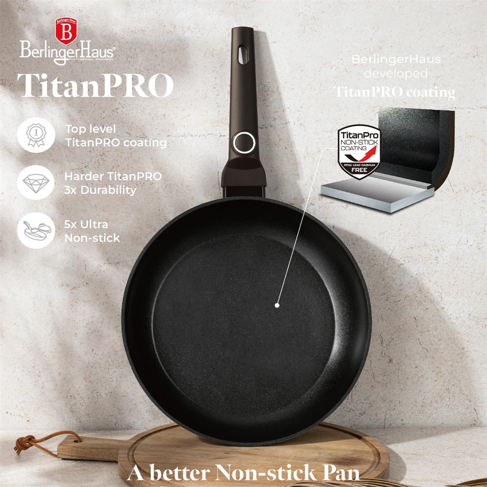 A 3x tartós tapadásmentes titán bevonat megakadályozza az ételek odatapadását, így a tisztítás gyerekjáték. Az ergonomikus, puha tapintású nyél kényelmes fogást biztosít, így a főzés igazi élmény lesz.