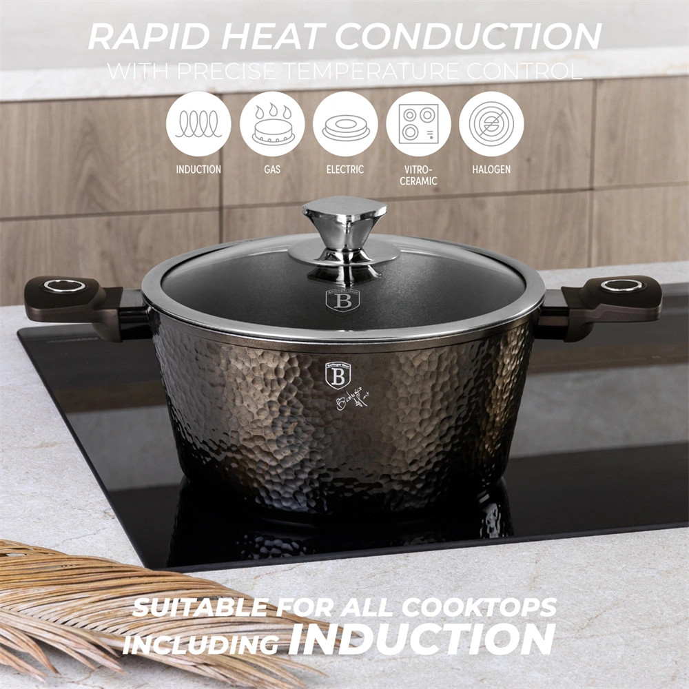 A hőálló üveg fedők lehetővé teszik az ételek könnyű ellenőrzését főzés közben, míg a turbó indukciós talp biztosítja az egyenletes hőeloszlást minden típusú főzőlapon.