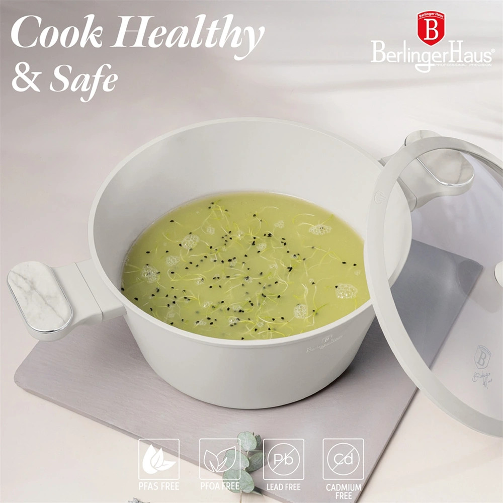 - Nem melegedő ergonomikus puha tapintású nyél és fogantyú ezüst betéttel és márvány színnel