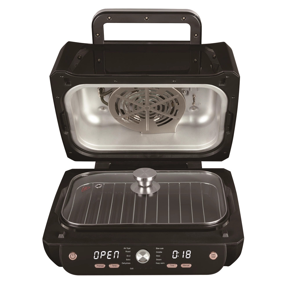 - 12 funkciót tartalmaz - légsütő, sült, grill, sütés, pirítás, aszalás, rács, lassú főzés, pörkölés, gőzölés, melegen tartás, manuális beállítás