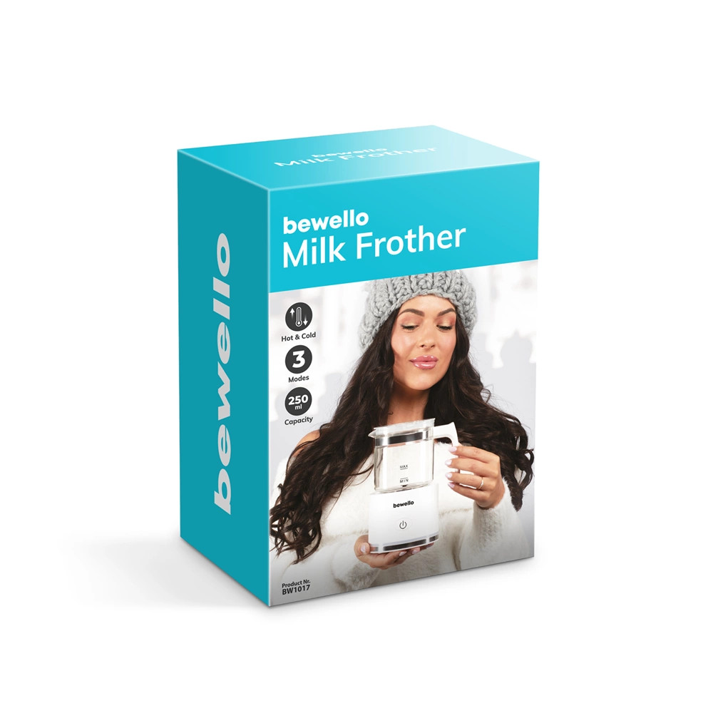 Amennyiben meleg tejhabot szeretne, öntsön friss tejet a tartályba, nyomja meg egyszer a gombot, hogy elindítsa a készüléket. Rövid időn belül habos és selymes meleg tejhabot kap, amellyel varázslatos latte-kat, kávékat és forró csokoládékat készíthet otthonában, vendégei és saját maga részére is. A könnyen tisztítható habosítófej hozzájárul a kiváló minőségű tejhab előállításához. A tartály nagy űrtartalommal és tapadásmentes felülettel rendelkezik, így a használat és a tisztítás is egyszerű. A készülék csendes működése pedig nem zavarja meg a ház nyugalmát, így élvezheti a csendes reggeleket vagy este a pihentető pillanatokat. Az otthoni kávézás szerelmeseinek elengedhetetlen kellék a Bewello termékcsalád legújabb tejhabosítója!