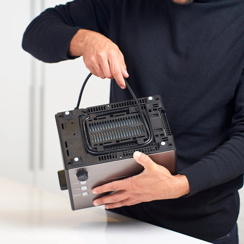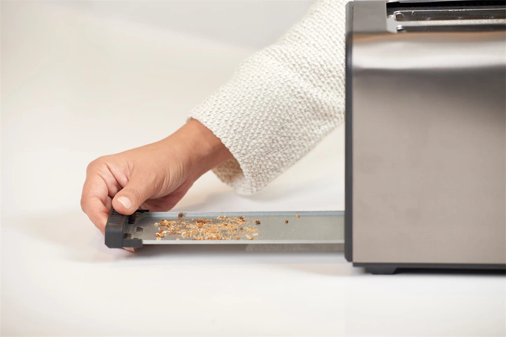 - A könnyen eltávolítható morzsatálca segít tisztán tartani a konyhai munkalapot a morzsáktól