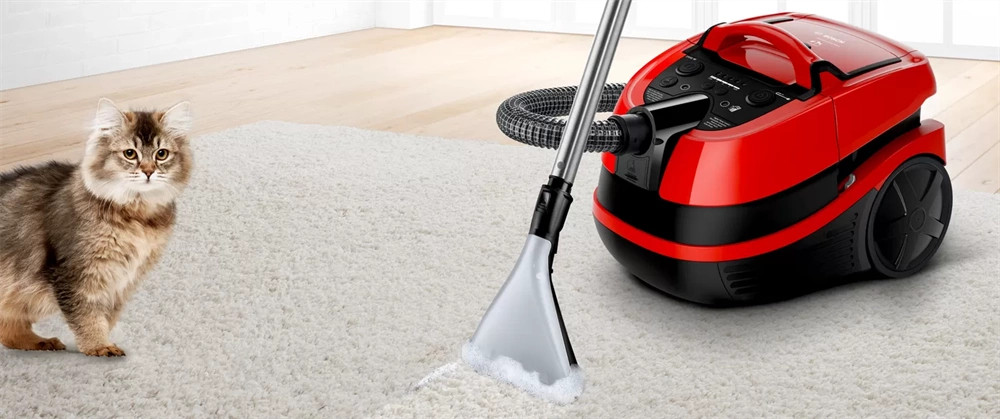 - Az első 3 az 1-ben takarítógép a Bosch-tól ProAnimal tartozékkészlettel kisállat-kedvelők számára - szőnyeg- és kárpittisztítás, folyadékok felszívása, porszívózás.