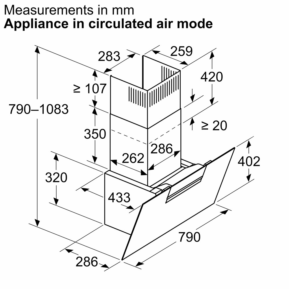- Minimális készülékmagasság keringtetéses üzemmódban: 892 mm