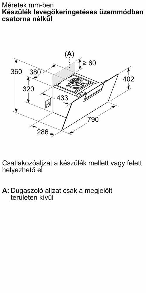 - Minimális készülékmagasság kivezetéses üzemmódnál: 855 mm