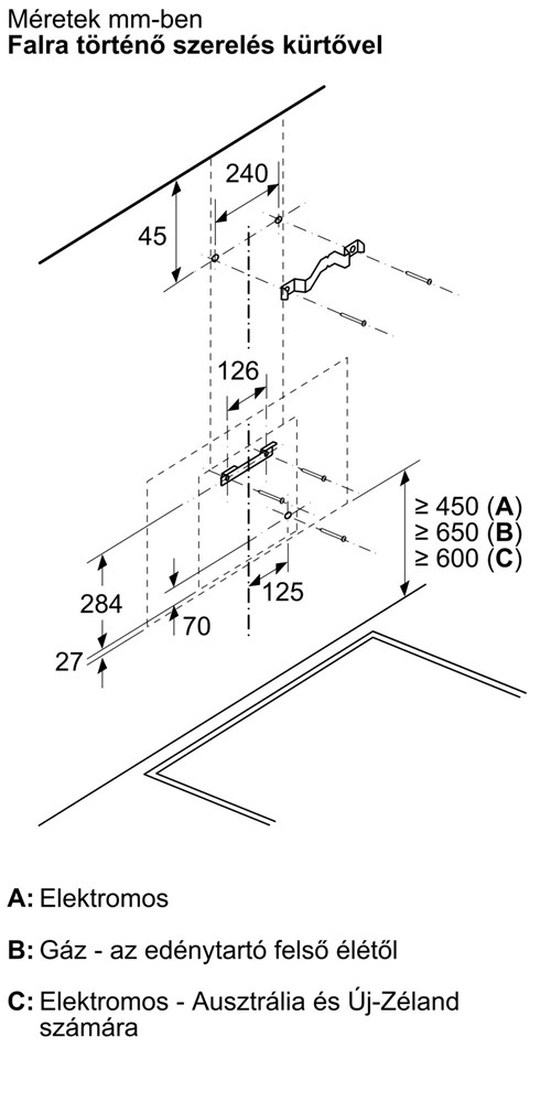 - Minimális magasság gázfőzőlap fölött: 650 mm